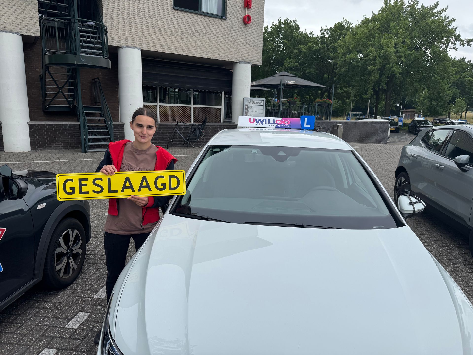 Meteen de eerste keer geslaagd...ik zou iedereen aanraden bij UWillGO te gaan lessen"